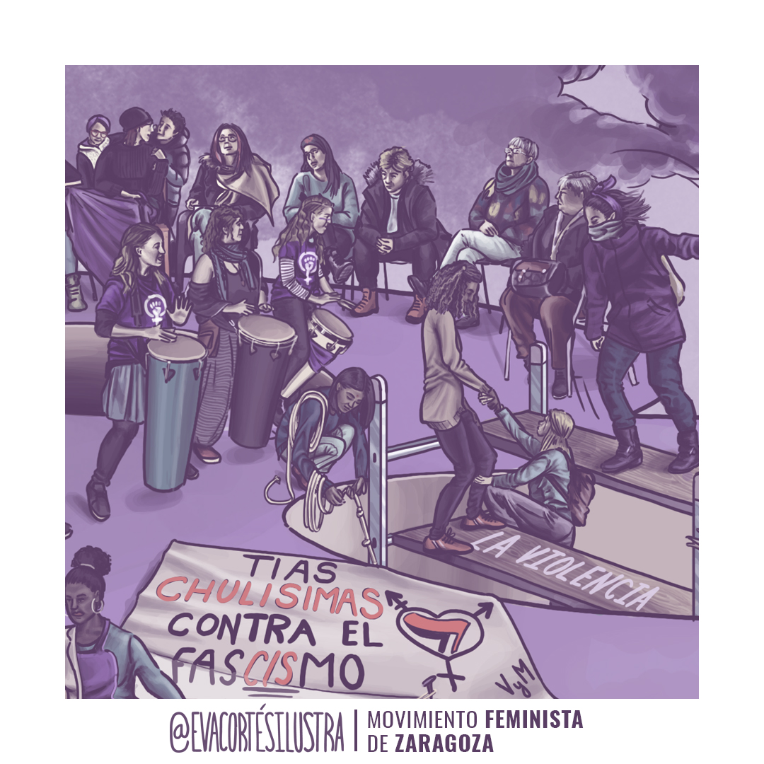 Un trabajo realizado desde la militancia y por la causa feminista. El cartel 8M Zaragoza 2023, debía de volver a tener la capacidad de llamar a las mujeres a las calles, reseñando la diversidad de causas y sucesos que han atravesado a los movimientos feministas, y en concreto en Aragón en el último año.
