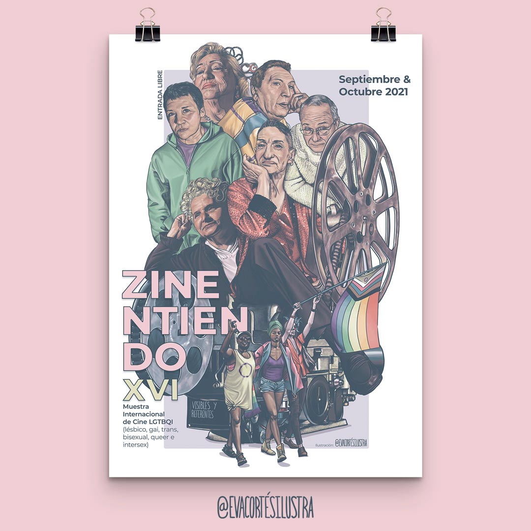 Zinentiendo es la Muestra Internacional de Cine LGTBQI que organiza en Aragón el Colectivo Towanda. Una Muestra de cine que programa y proyecta largometrajes, cortometrajes y documentales de temática LGTBQI (Lésbica, gai, transexual, bisexual, queer e intersexual) por todo el territorio aragonés. Esta campaña es la correspondiente al diseño y la ilustración del año 2021, es decir, la XVI edición.